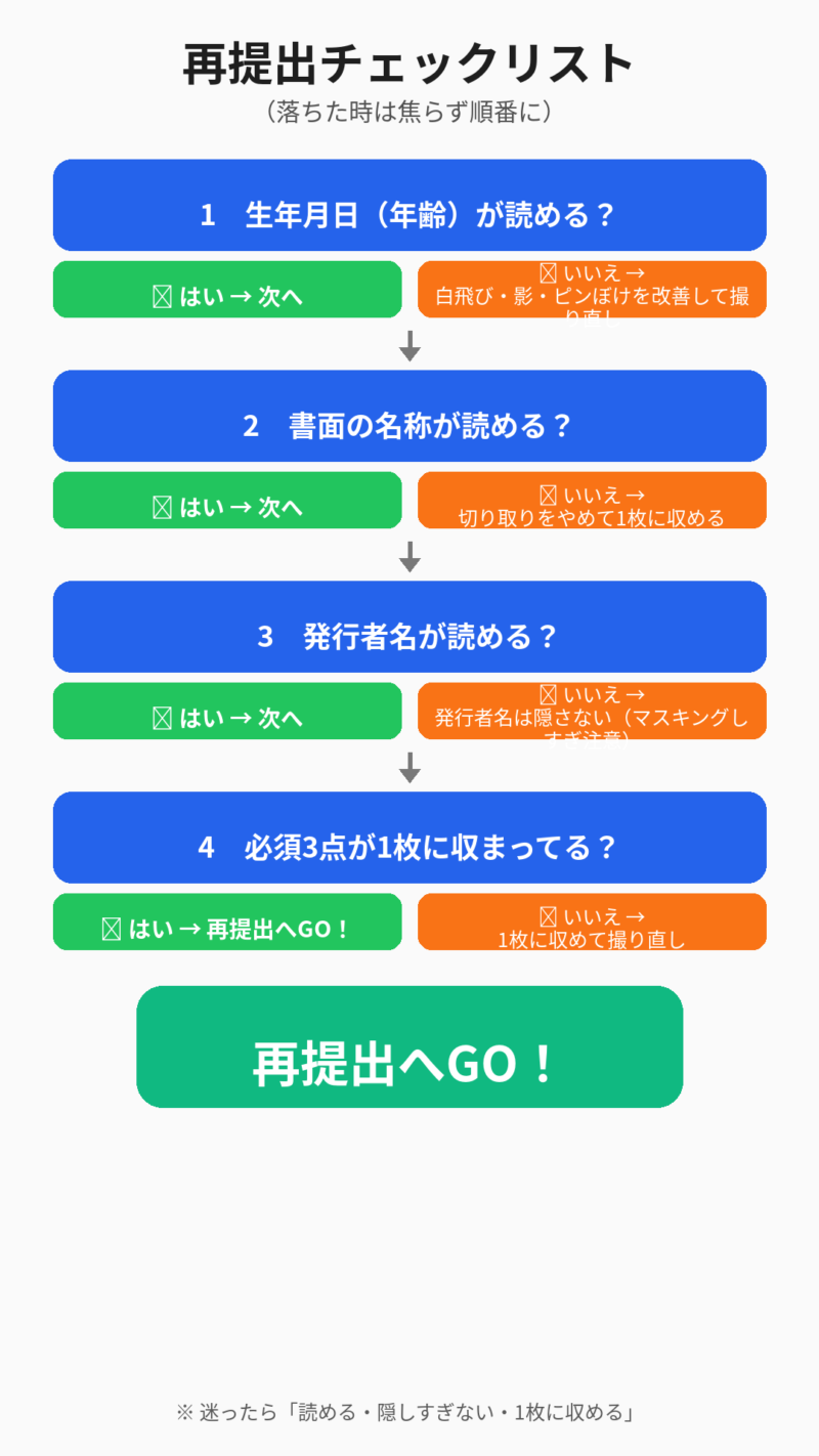 ・再提出は焦らずチェックリストで潰す