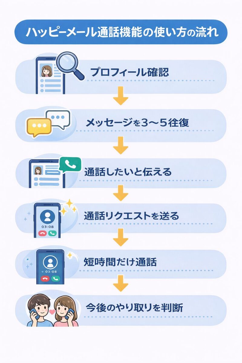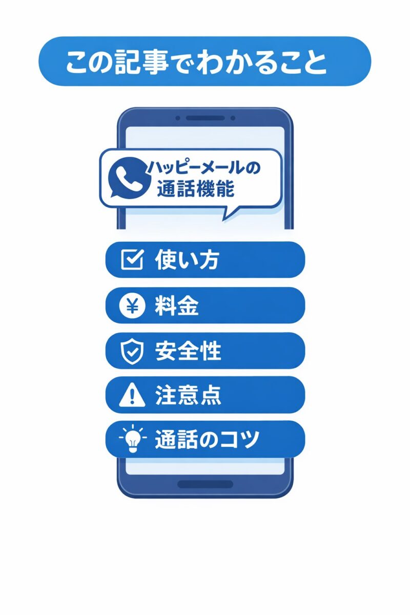この記事では、ハッピーメールの通話機能について、使い方・料金・メリット・注意点をわかりやすく解説します