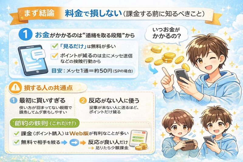 • 無料で相手を絞る → 反応が良い人にだけ使う → 足りたら少額課金