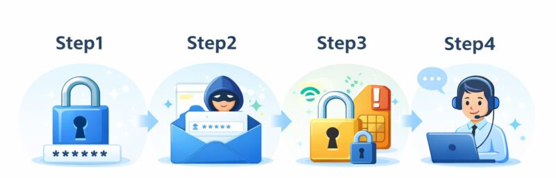 SMS認証が絡む仕組みだと、携帯回線側(キャリアの会員ページや転送設定)が穴になることもあります。
