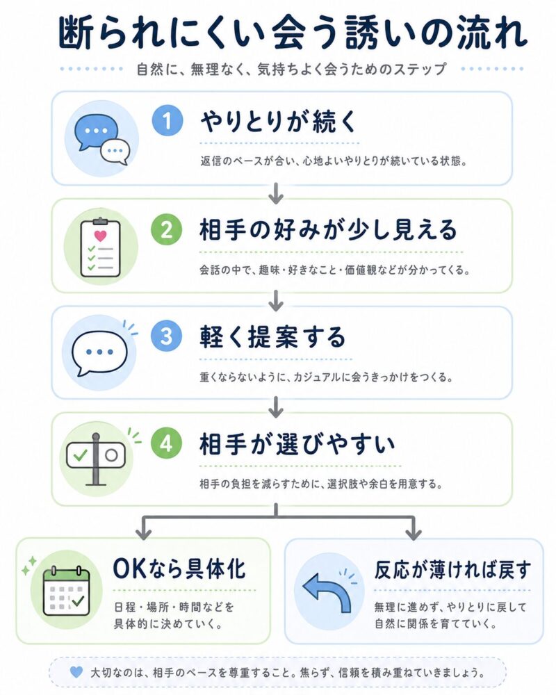 大事なのは、いきなり強く誘うことではなく、相手が選びやすい形で切り出すことです。