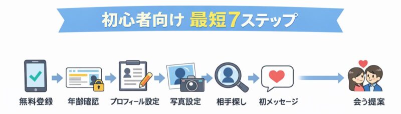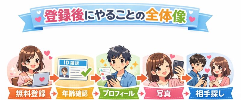 この記事では、初心者がつまずきやすいポイントを先回りしながら、登録後にやることと出会うまでの流れを順番にわかりやすく解説します。