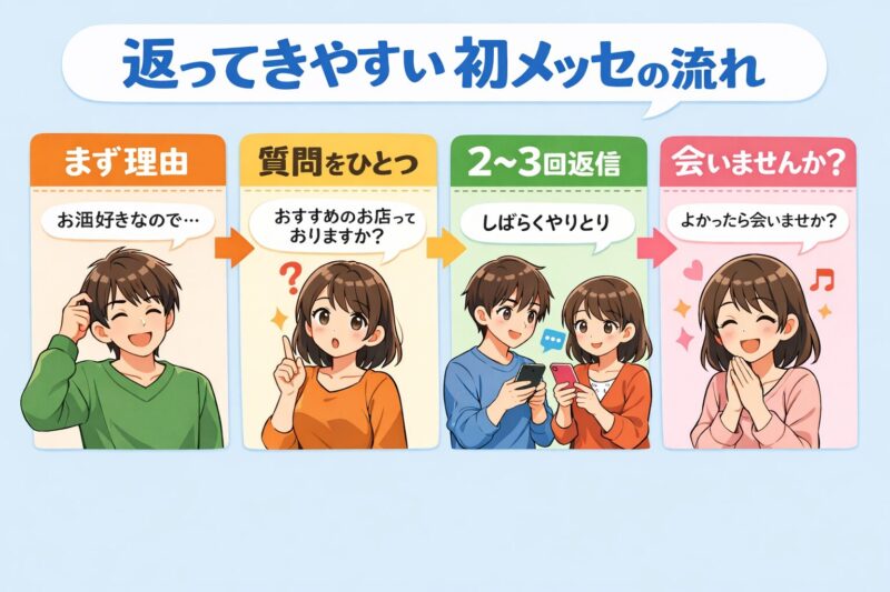 | 初メッセージ | 短く自然で返しやすくする |