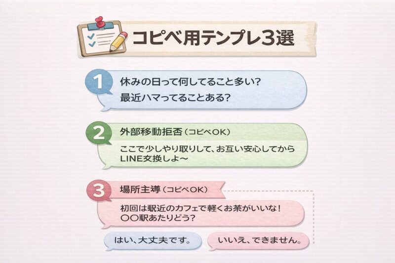 - 迷ったらこれ:炙り出しテンプレ3つ(コピペOK)
