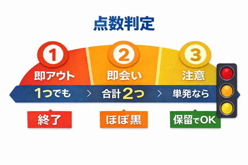ポイント:即アウト項目が出ない限りは、単発で決めない。