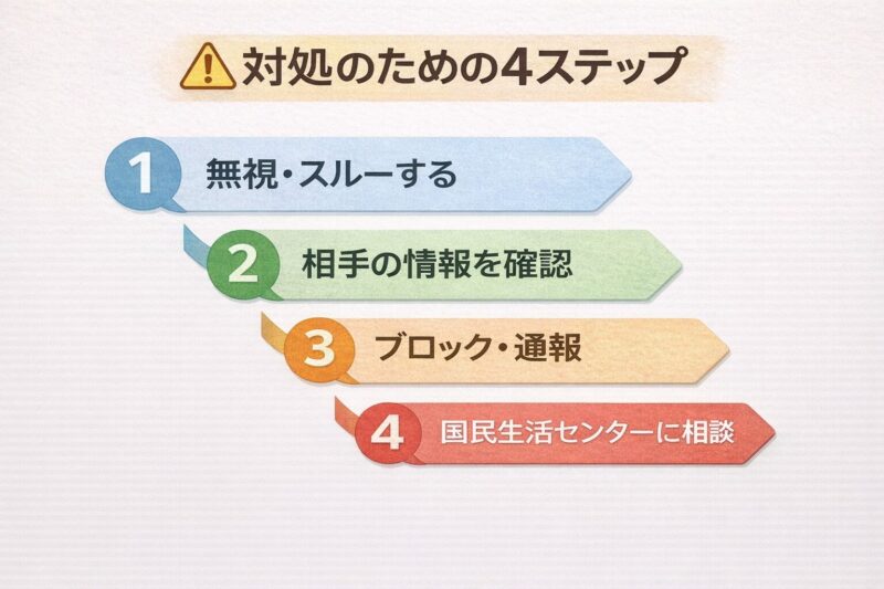 行動:返信せず終了。迷ったら通報でOK(運営が調査して判断してくれます)。