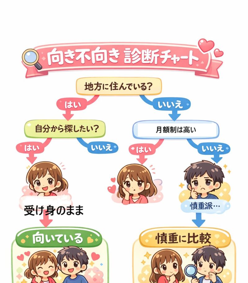 そのため、結婚前提だけを最短で探したい人にとっては、相手の目的を見極める手間が増えやすく、ここをデメリットに感じることがあります。